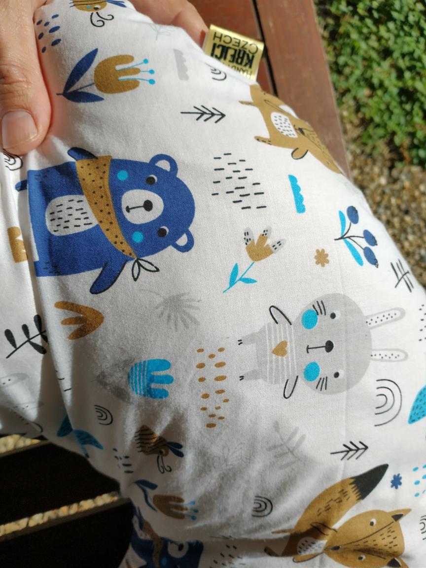 Poslední fotka ilustruje velikost polštáře s panáčkem o velikosti cca 30 cm (tento vzor Barevní motýli prodáváme pod jinou položkou)